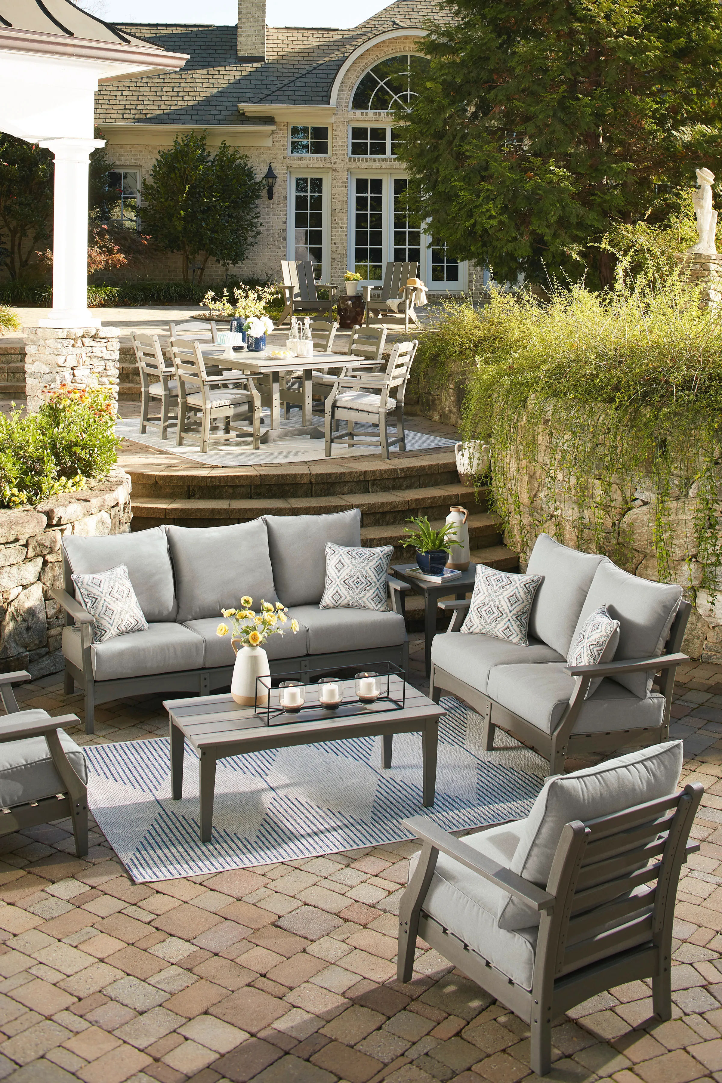 It’s the dawn of a new day for gray. Embrace the style trend with the Visola outdoor sofa. Crafted of HDPE material that combines the exceptional durability and weather resistance you need with the “wood look” you love, this comfortably cushioned sofa takes outdoor living to a whole new level. Rest assured, the thick seat and back cushions and throw pillows are wrapped in our exclusive Nuvella® high-performance fabric that’s fade resistant, stain resistant and a breeze to clean.