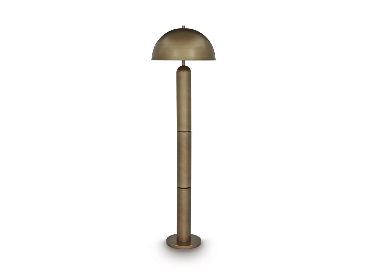 Dome sweet dome. Shine a light on your love of all things contemporary with this floor lamp. Its sleek goldtone finish and bold, columnar design add a brilliantly modern touch to any room. A dome-shaped shade provides a warm and focused light, perfect for reading or creating a cozy ambiance. The matching table lamp (sold separately) is also a bright idea.