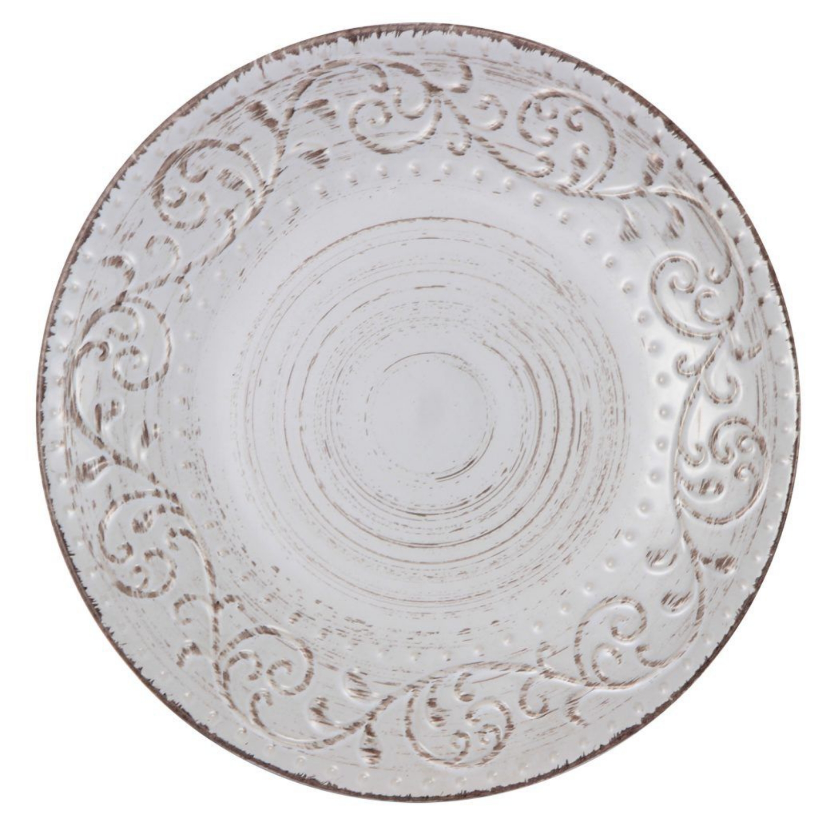 With a gentle swirling pattern, delicate beading, and antiqued white finish, the Rustic Flare Dinner Plate offers rustic elegance and the durability of stoneware. Mix the turquoise and white Rustic Flare dishware interchangeably to create a captivating dinner table. These charming dishes will complement a variety of styles with their ageless beauty and durability.