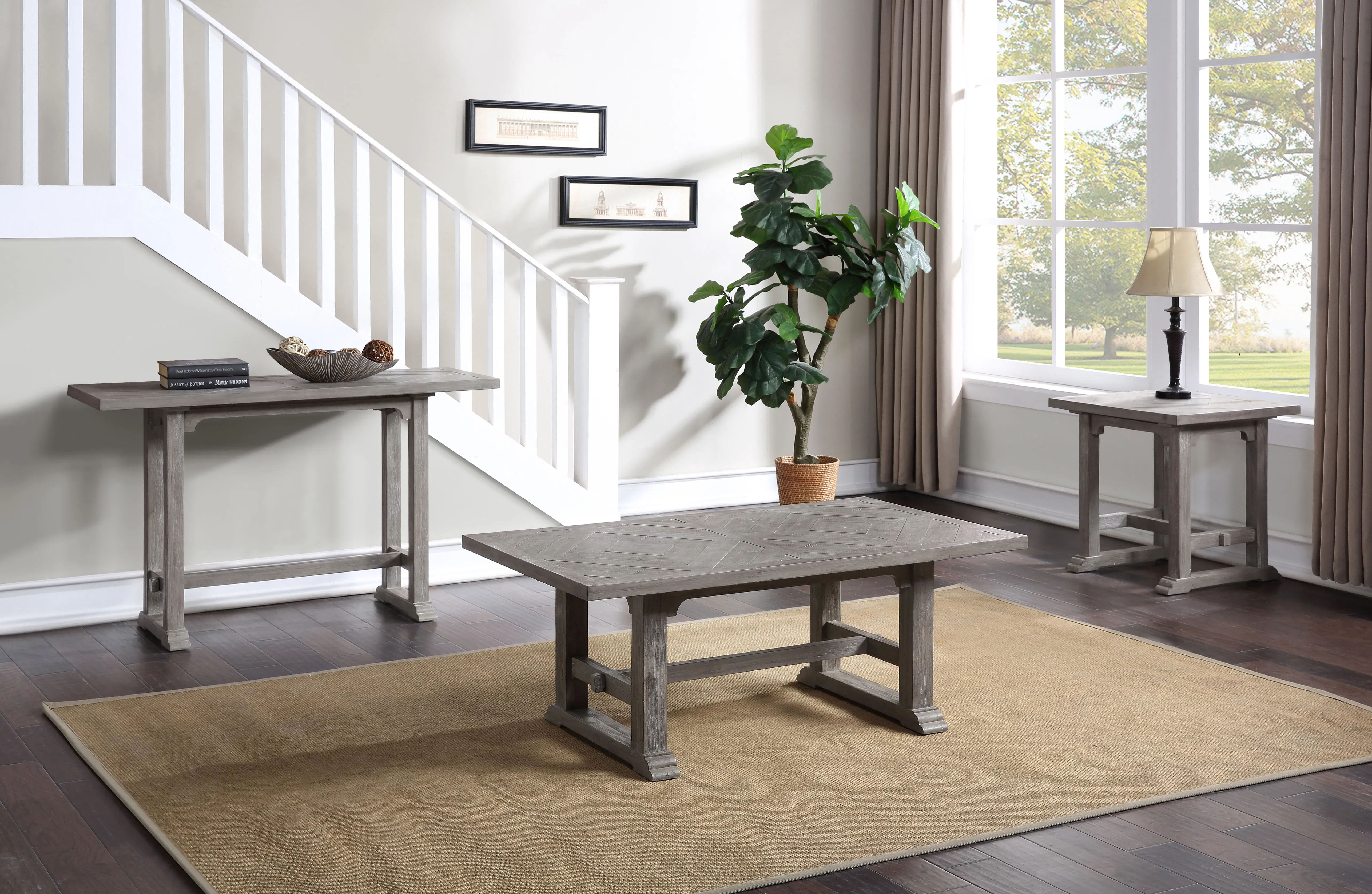 Rustic yet refined, casual but elegant, Whitford represents a duality of styles that comes together in a wonderful combination of design. Whitford features a signature raised double diamond inlay on the Sofa Table top and saw rasping and other distressing to enhance the casual feel of the collection. Dress your living room up or down with this Sofa Table from Whitford.