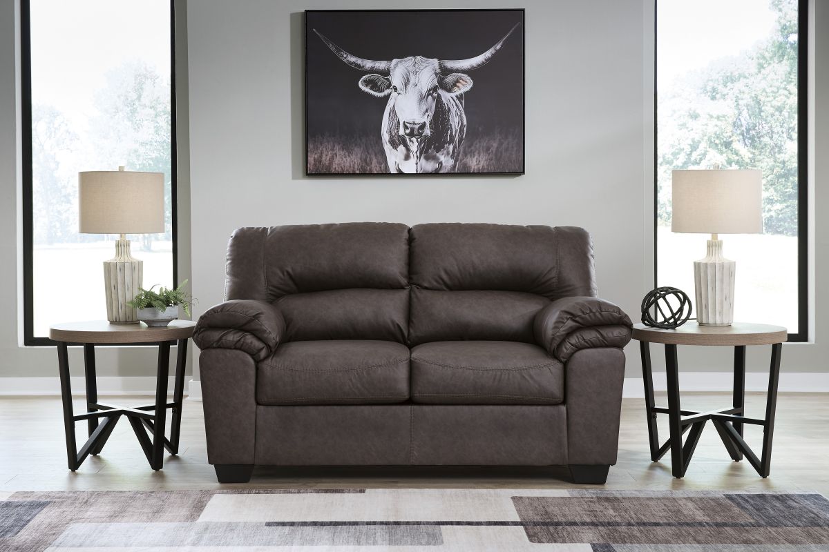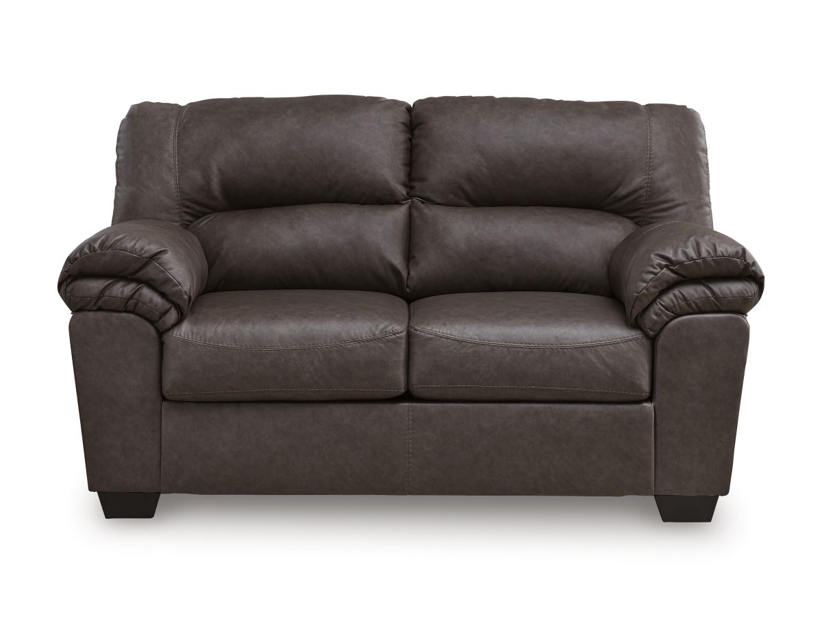 Modern comfort never looked so good. Sporting supremely soft yet durable cushions accented with high-fashion jumbo stitching, this stunning loveseat is the ultimate choice in comfortably cool, contemporary style. Its umber-hued faux leather indulges with an upscale feel and wows like the real thing.