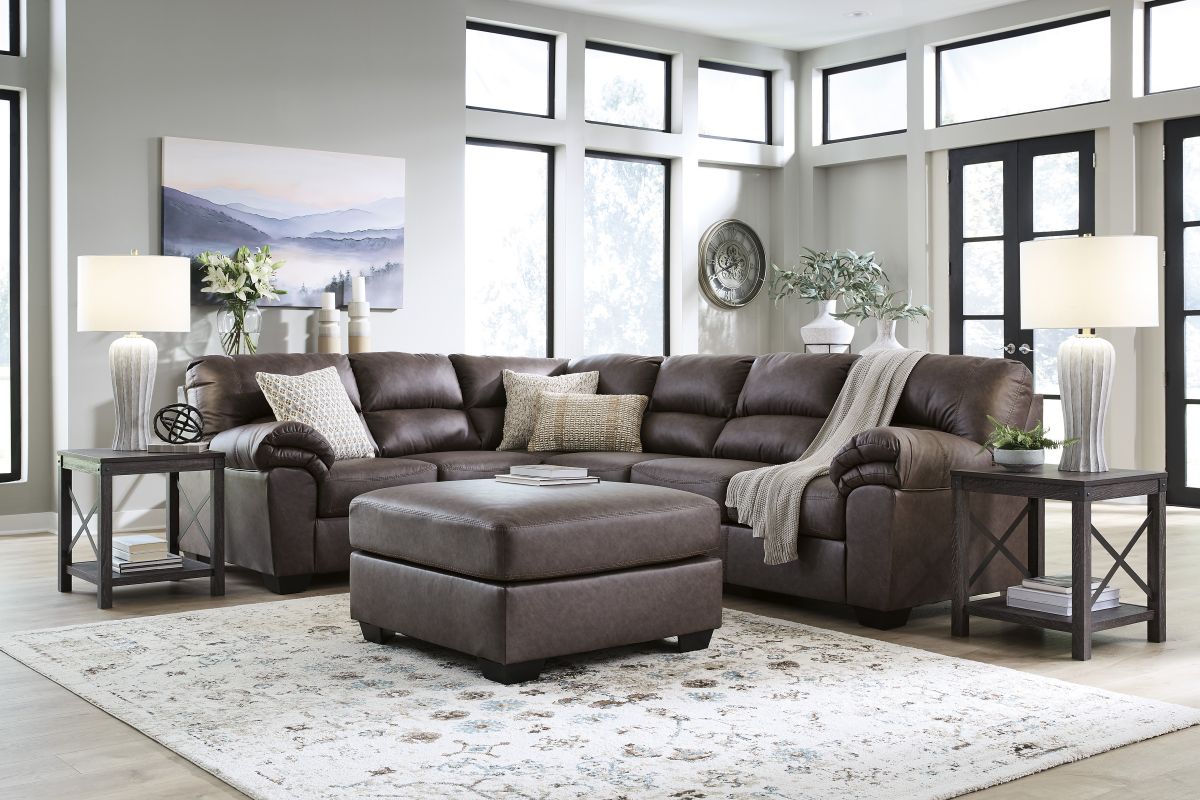 Modern comfort never looked so good. Accented with jumbo stitching for high-fashion flair, this oversized ottoman is the ultimate choice in comfortably cool, contemporary style. Its umber-hued faux leather indulges with an upscale feel and wows like the real thing.