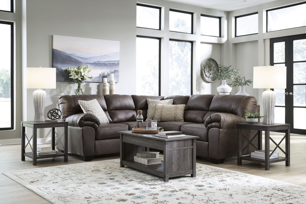 Modern comfort never looked so good. Sporting supremely soft yet durable cushions accented with high-fashion jumbo stitching, this stunning sectional is the ultimate choice in comfortably cool, contemporary style. Its umber-hued faux leather indulges with an upscale feel and wows like the real thing.
