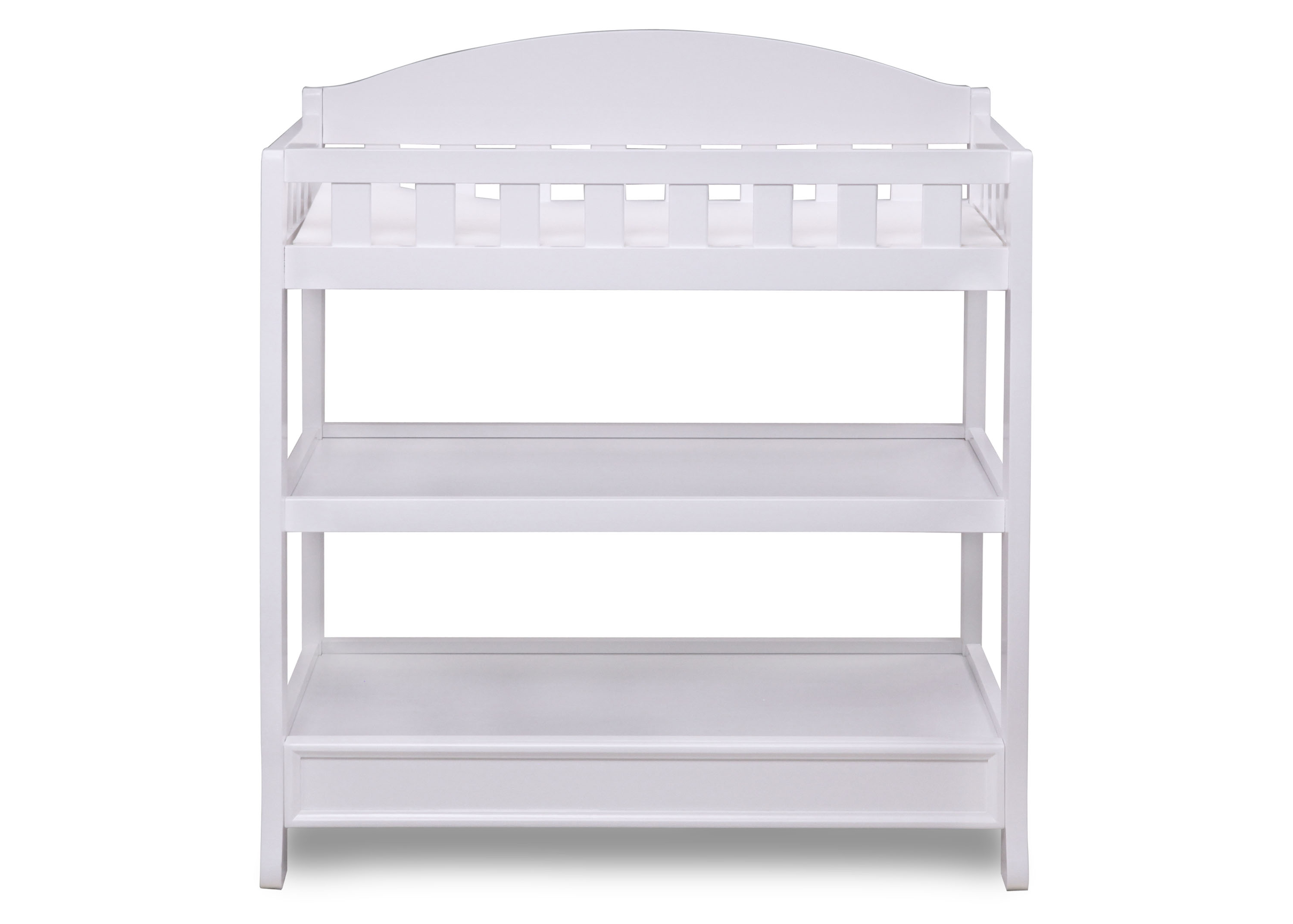 Change or dress your baby in absolute comfort with the Wilmington Changing Table by Delta Children. Designed with a timeless bell-shape silhouette and versatile features that make diaper changes easier, this changing table has two shelves that allow you to store your child's changing and dressing necessities nearby. The included changing pad comes with an attached safety strap and is placed in a fully enclosed dressing area that provides extra security. The Wilmington Changing Table is available in several popular finishes and coordinates with many Delta Children cribs.