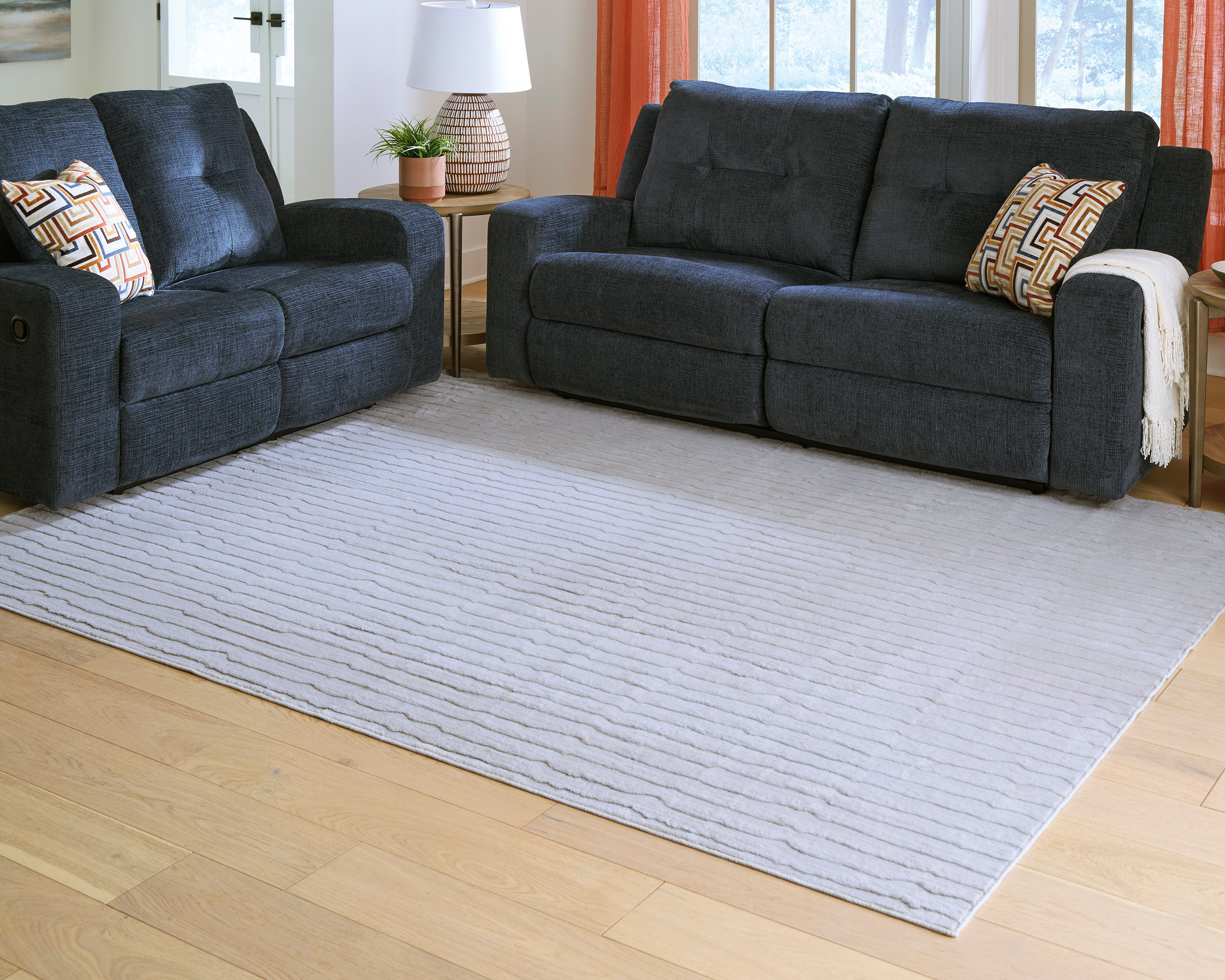 Impress with contemporary cool character. This rug welcomes visitors with subtle stripes and soft faux fur underfoot, while its neutral gray is an understated way to dress up your floor. Plus it's machine washable for fuss-free cleaning.