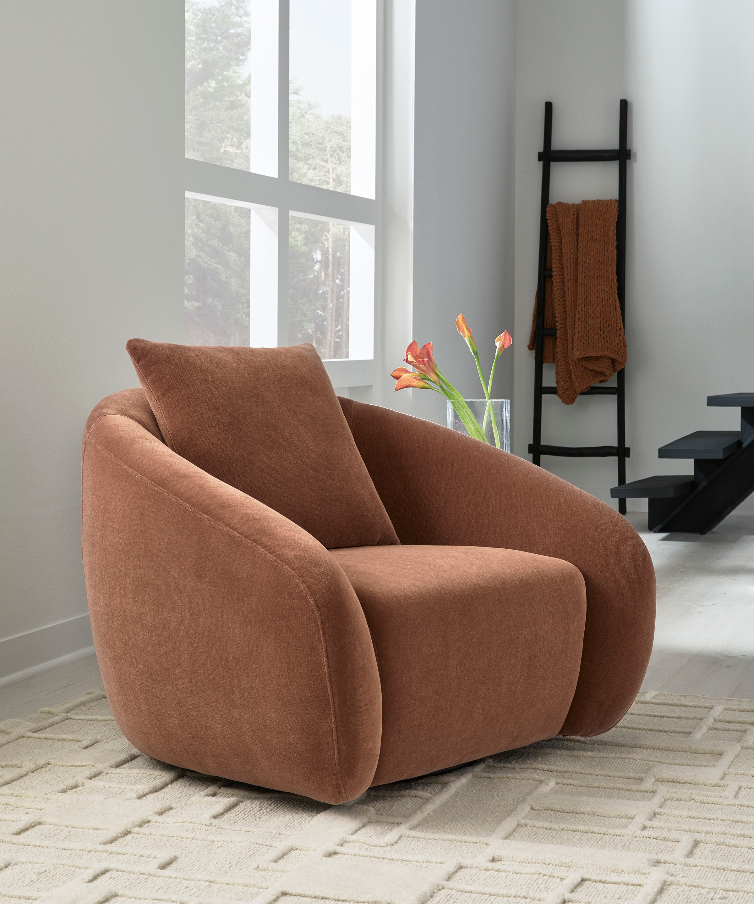 Craft a curated, cozy seating area or reading nook with this swivel accent chair. For a luxurious lounging experience, it’s outfitted in soft-to-the-touch velvet upholstery. The streamlined curves reflect trending retro-inspired aesthetics, resulting in a look that’s both timeless and contemporary. And for added convenience, a swivel base lends subtly chic function.