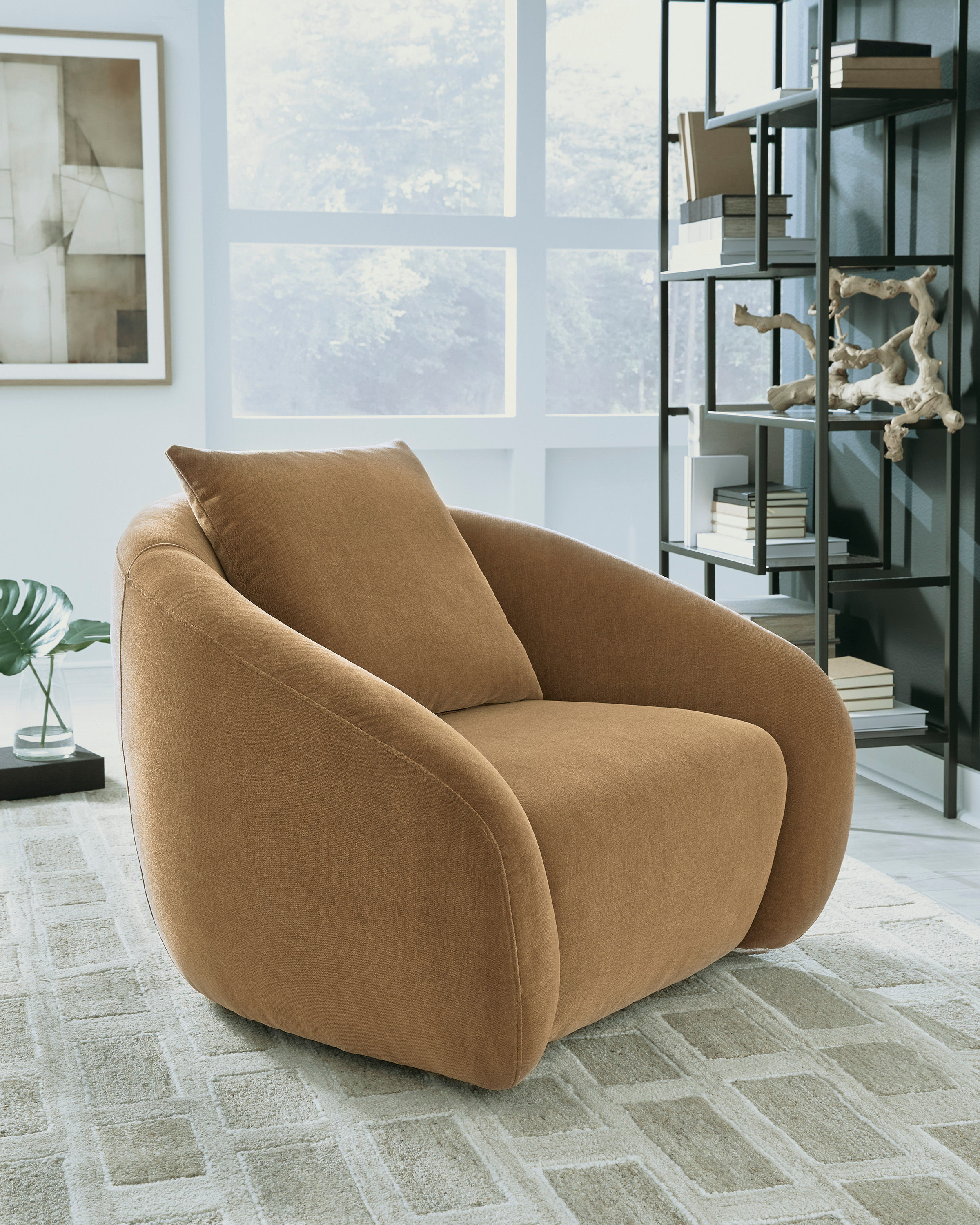 Craft a curated, cozy seating area or reading nook with this swivel accent chair. For a luxurious lounging experience, it’s outfitted in soft-to-the-touch velvet upholstery. The streamlined curves reflect trending retro-inspired aesthetics, resulting in a look that’s both timeless and contemporary. And for added convenience, a swivel base lends subtly chic function.