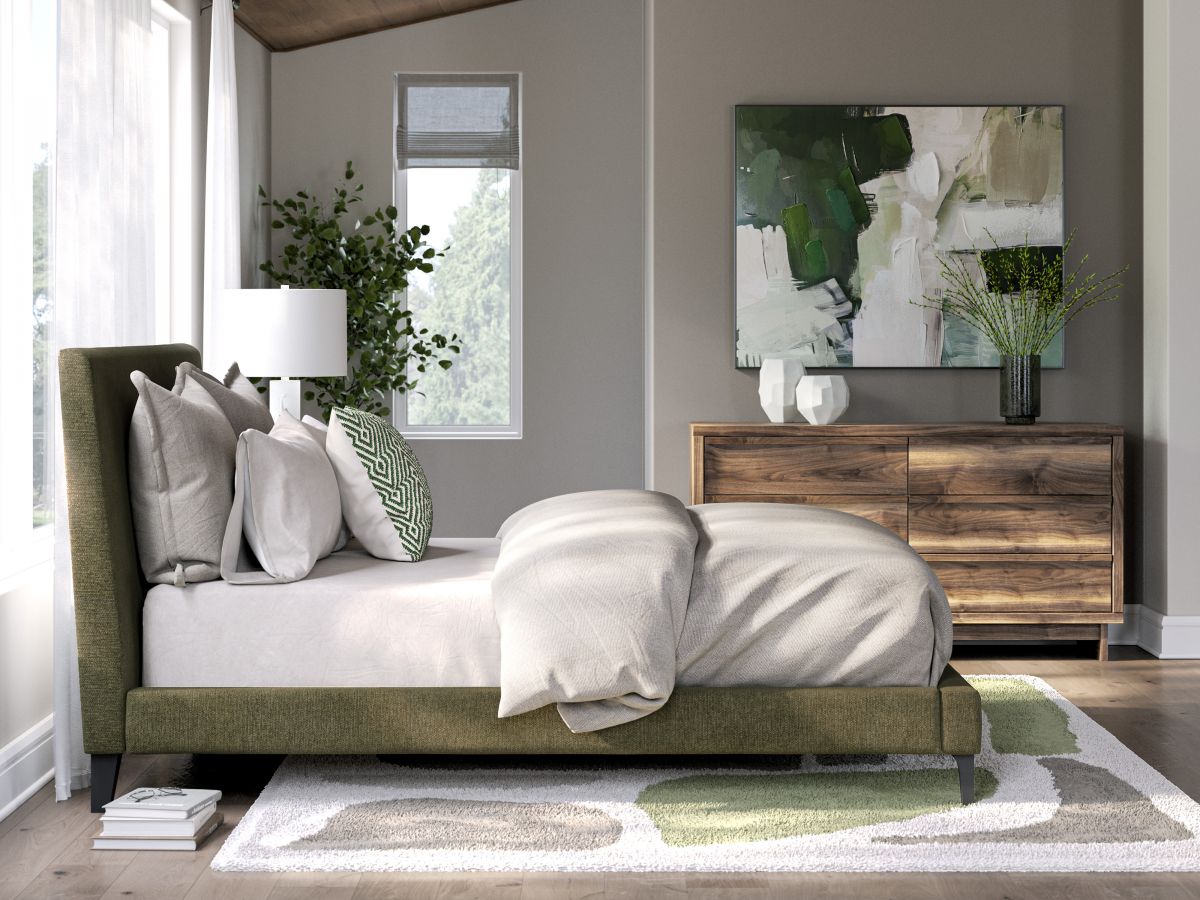 Nostalgic style, retooled for today’s trends. This dresser with mirror puts an elevated twist on mod aesthetics. Its warm brown tones reflect the mid-century vibes you love, while the angular base incorporates contemporary motifs. Integrated drawer handles round out the look in sleek style. With this dresser, you can build your bedroom into a modern haven with a touch of retro-cool flair.